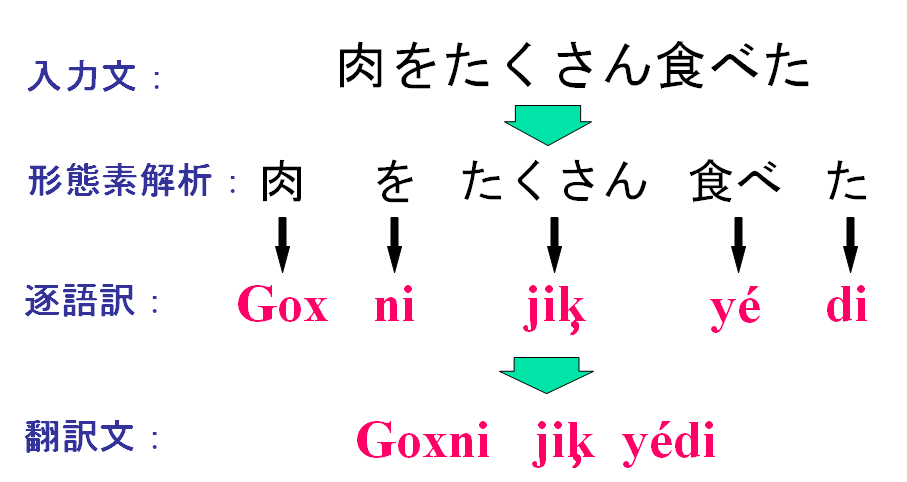 アジアでは,日本語の他にも膠着語と呼ばれる言語が多く使われています. そこで,膠着語の特徴を活かした機械翻訳の実現を目指しています.
